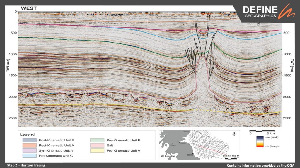 The image below shows our interpretation of a seismic line from the Mid North Sea High. Tune in next week to see how we have transformed this seismic data into a play cross section.